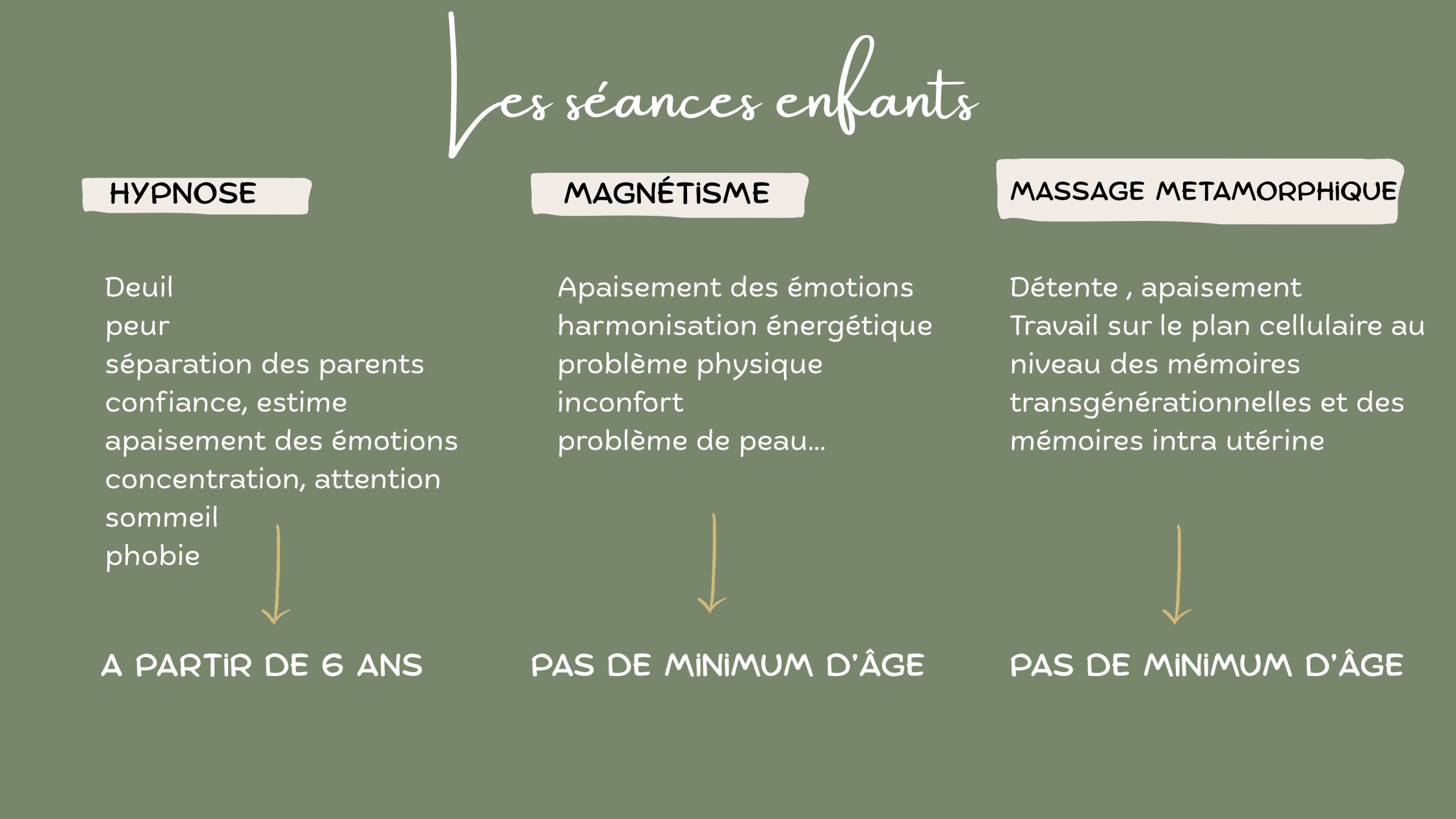 Tarif des séances enfants : 55€/ RDV Le tarife st applicable aux enfants jusqu'à 13 ans. Ensuite c'est le tarif adulte qui prend le relais.